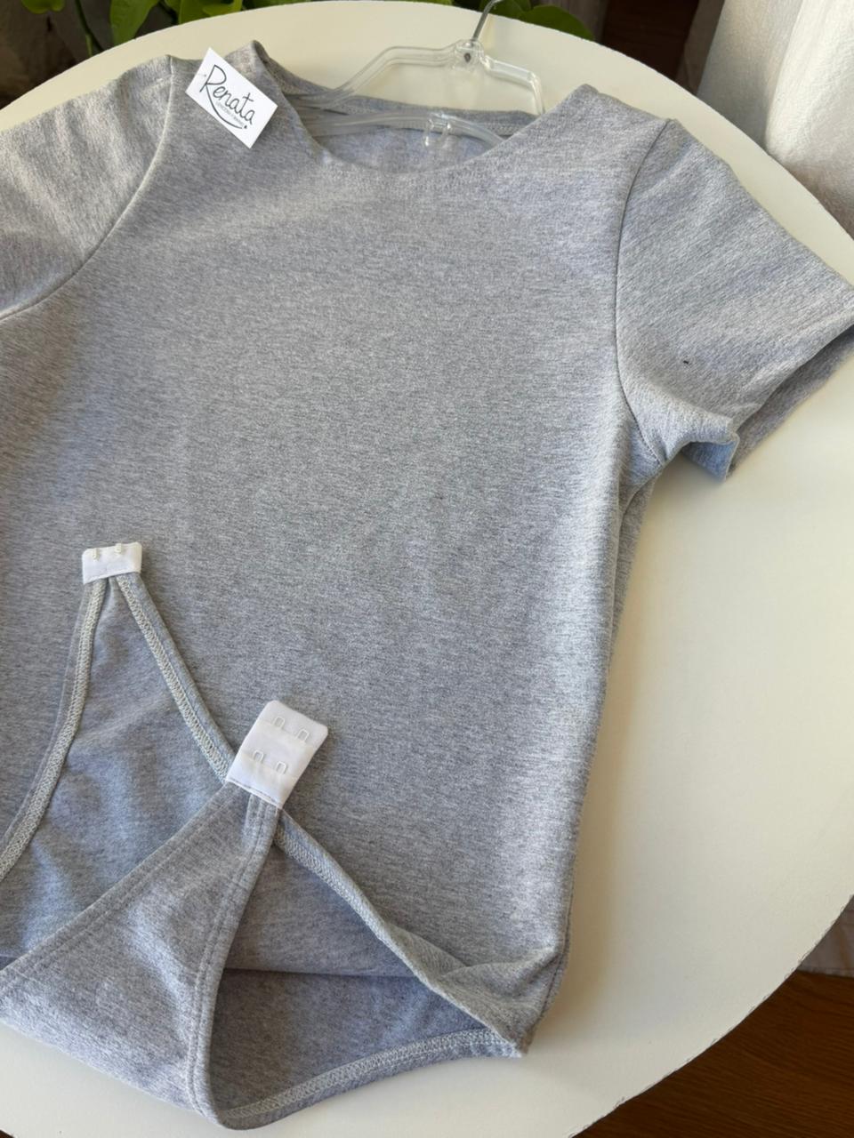 - Body gris melange de lycra mega elastizada, mangas cortas con broche para desprender!