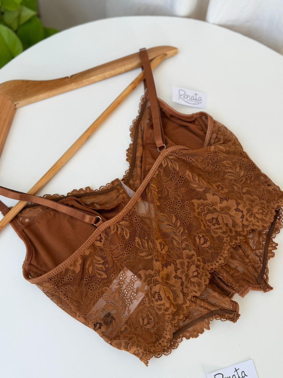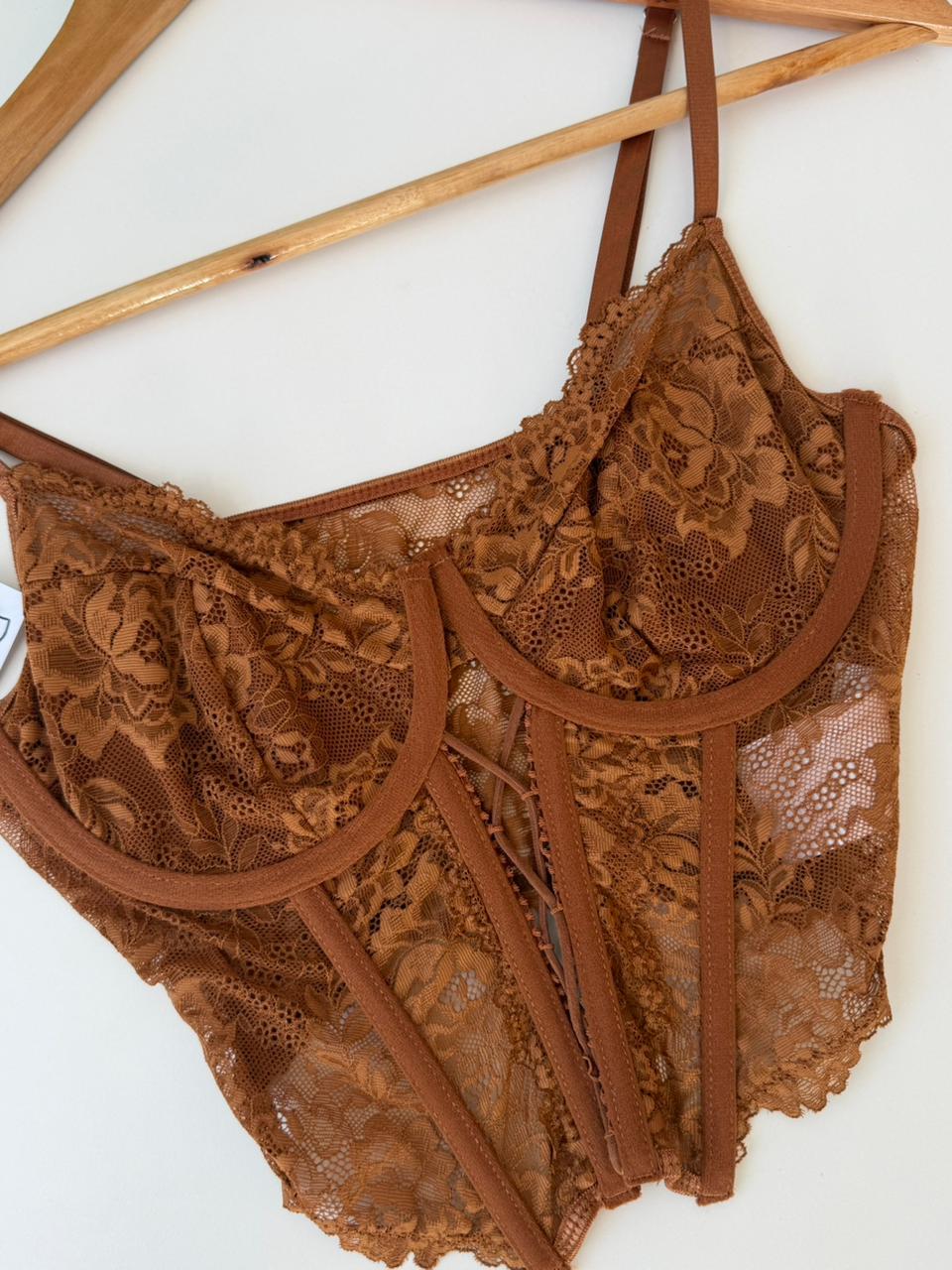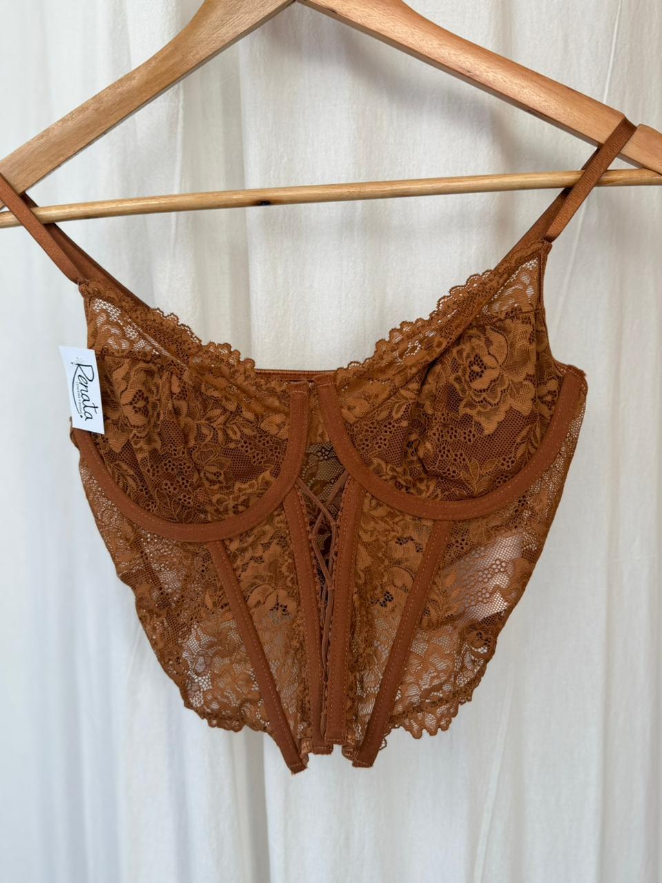 Bralette/ Corset/ Bústier de encaje tono dulce de leche. Divino!!