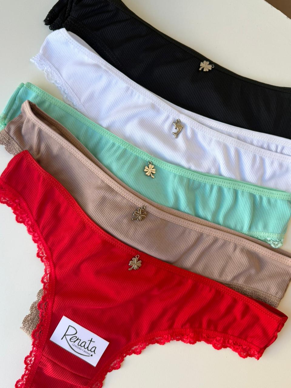 Bombi less de morley/lycra elastizada con dije de trébol & delfín. Cintura y pierna con puntilla. Súper suaves y cómodas!