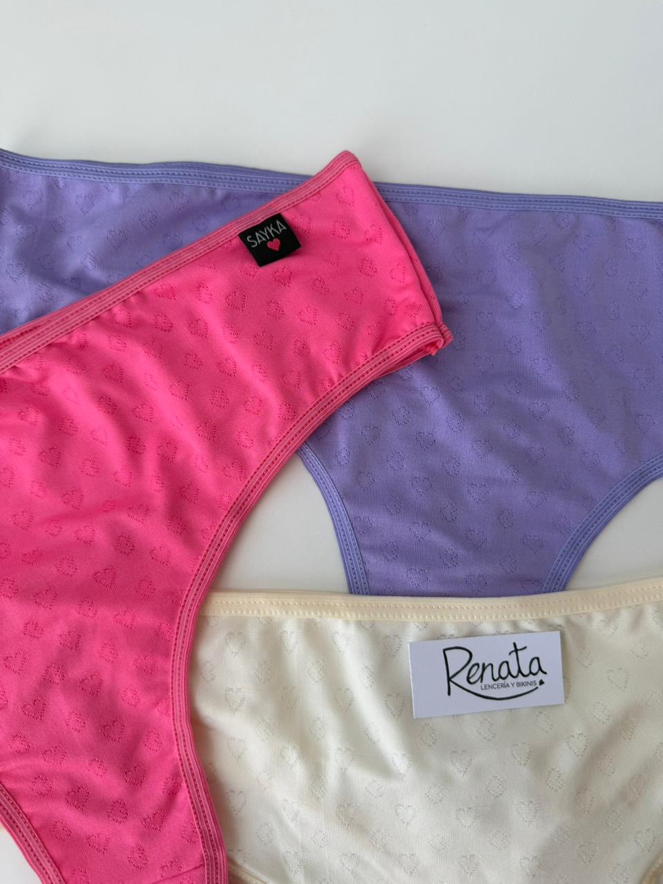 Bombis less modelo culotte, de tela super cómoda y ligera, elastizada. Detalle de corazones acanalados. Talle amplio.