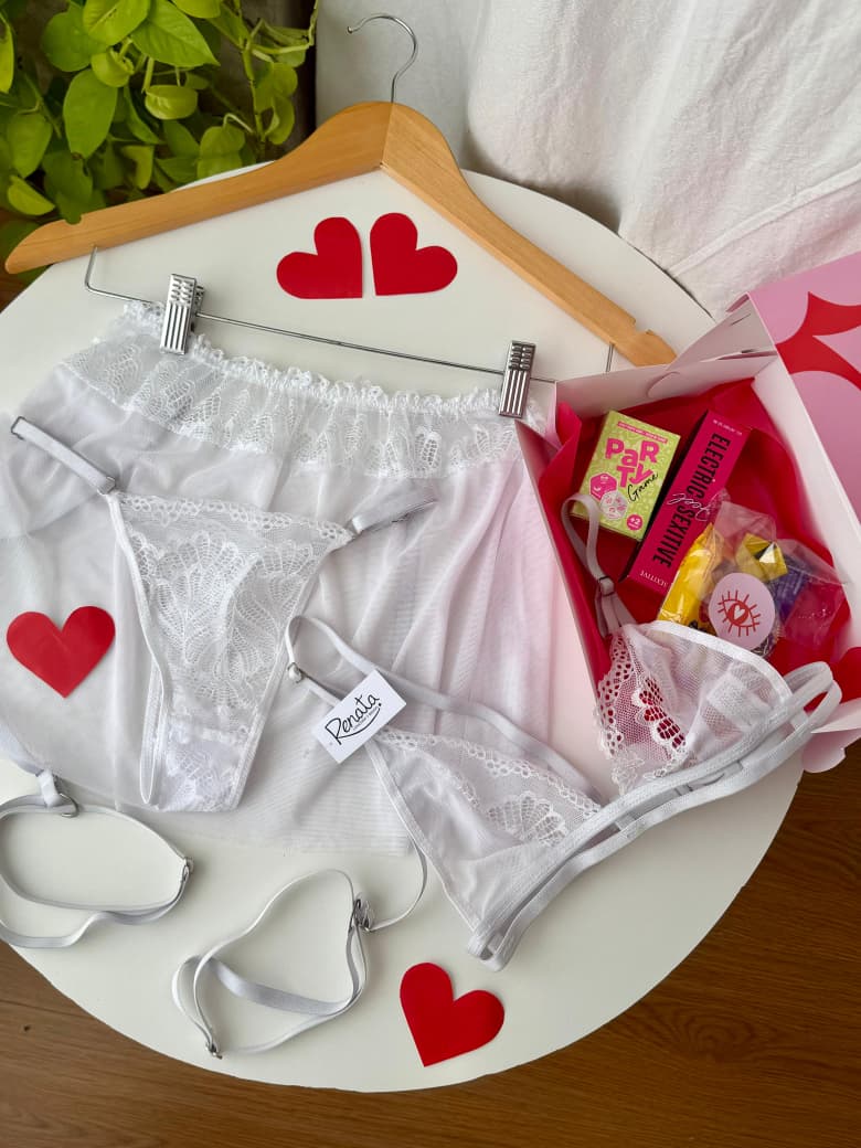 •Set 3 piezas: mini tul con ligas + colales regulable y corpiño