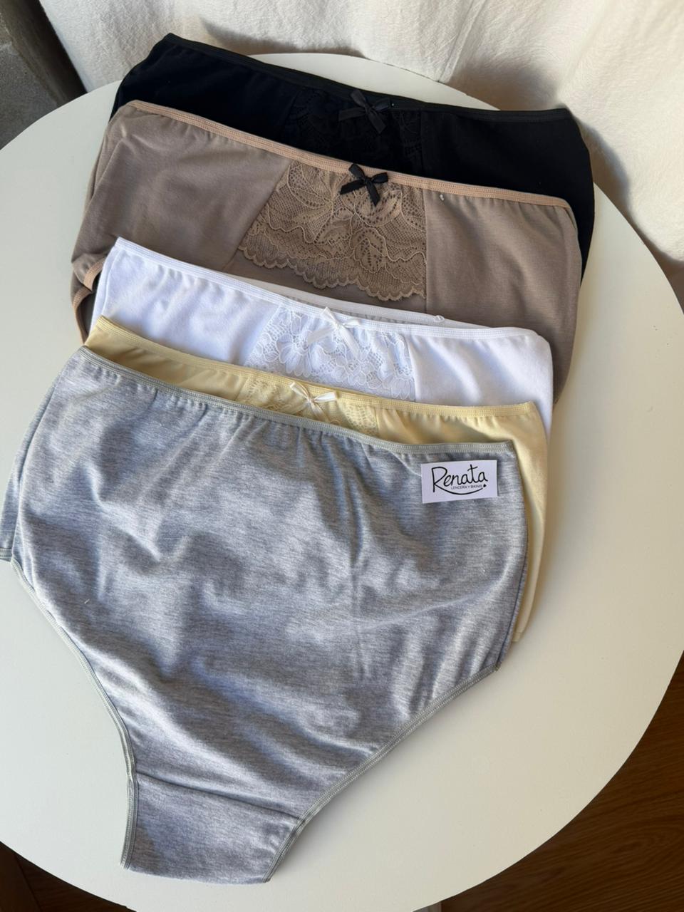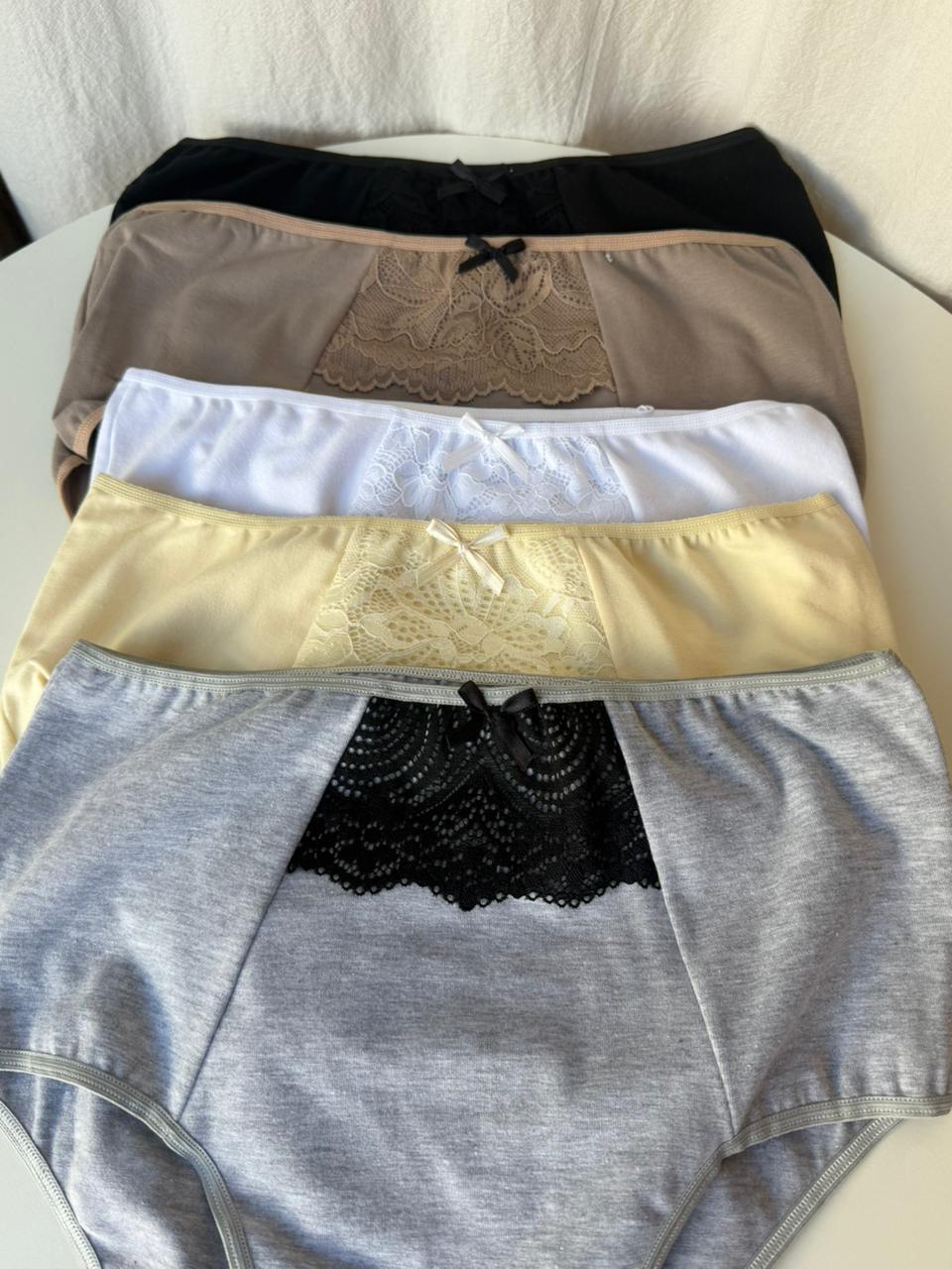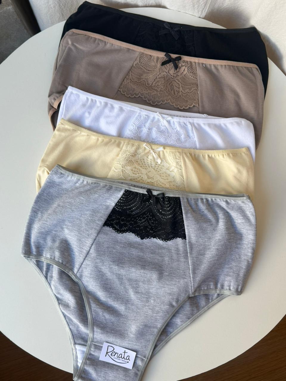 Bombacha vedetina de algodón con bolsillo de encaje y moño. Talle especial Señora.