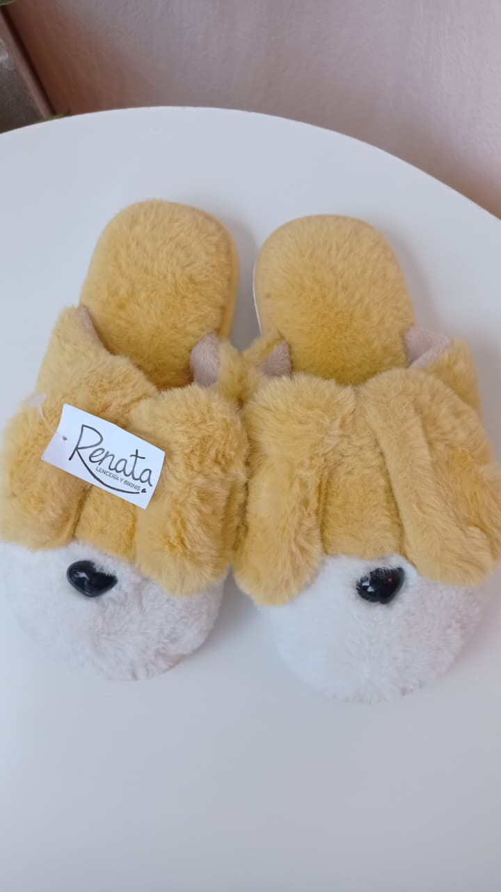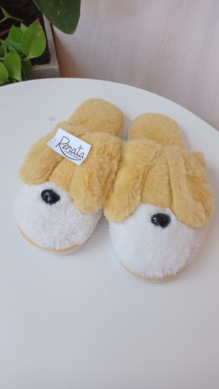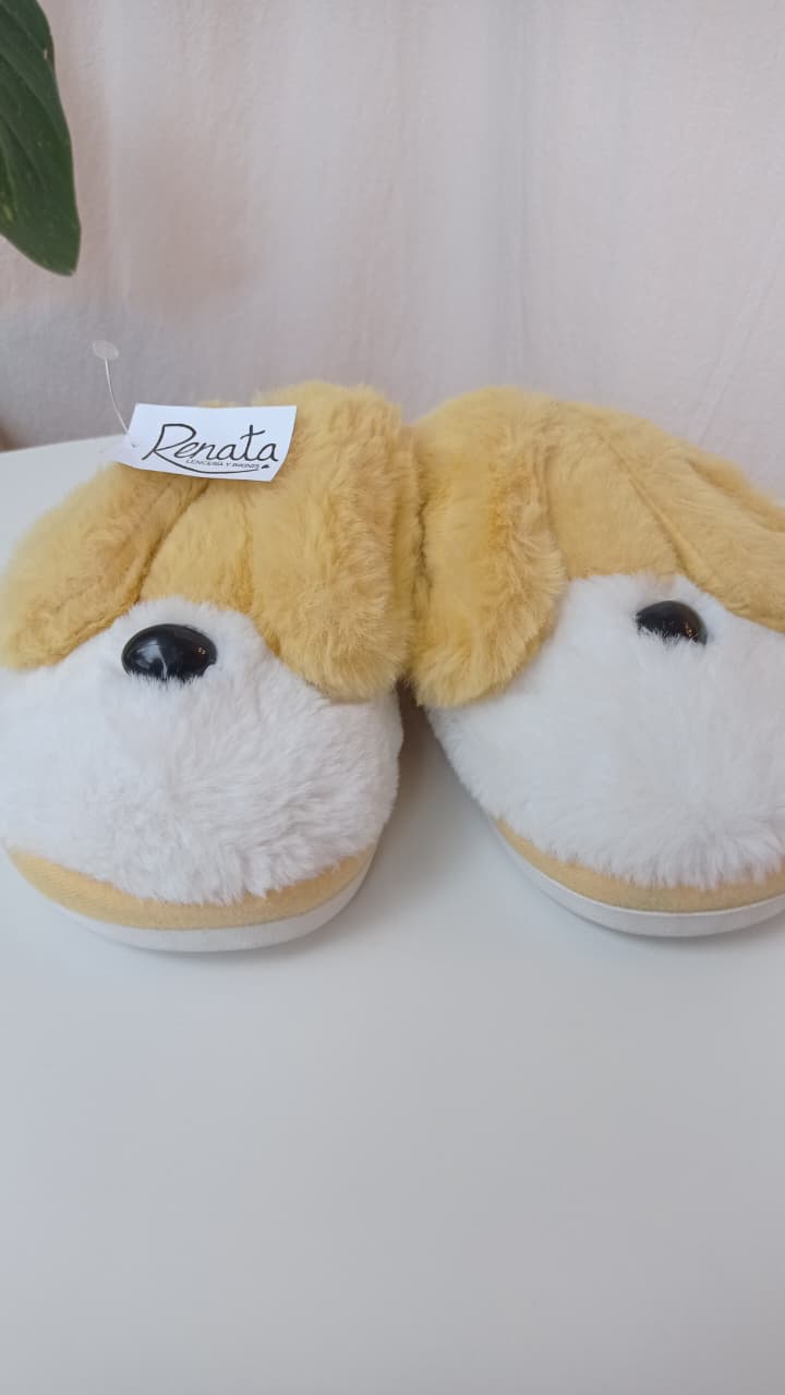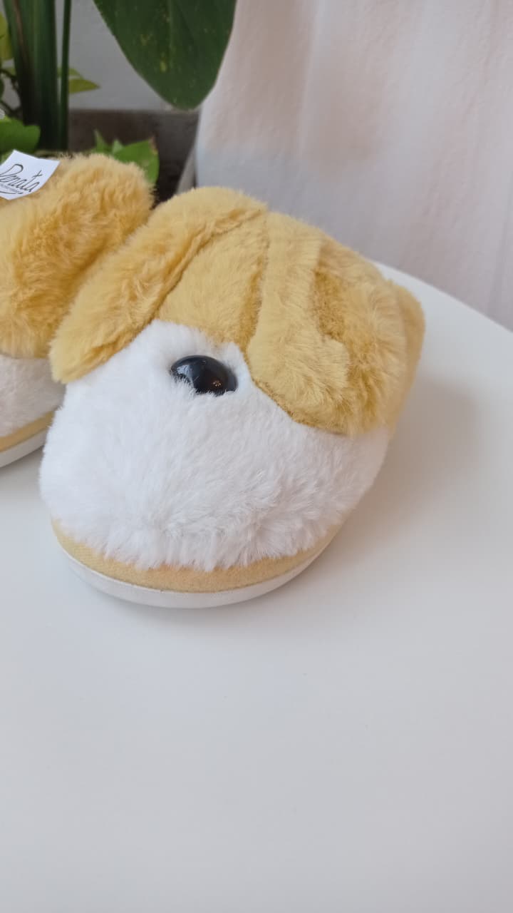 Pantu clásica abierta, con base reforzada resistente. Animalito PERRITO AMARILLO - DE PELUCHE SUAVE!