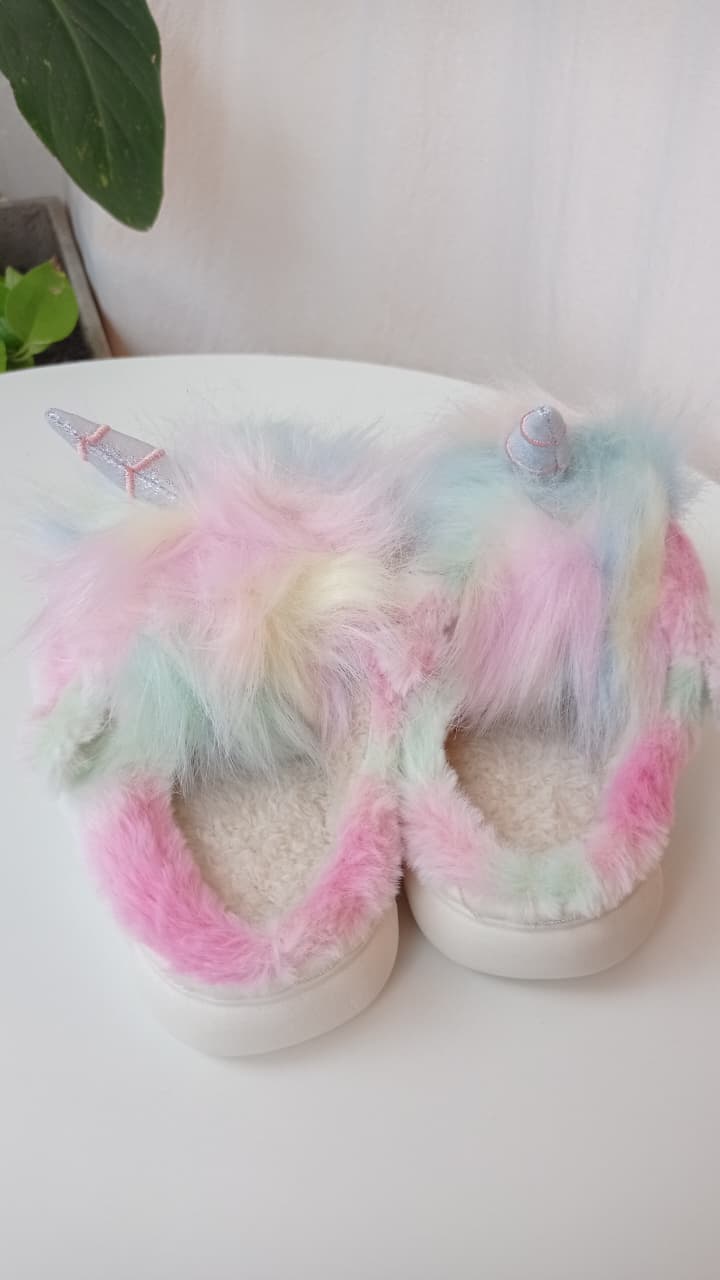 PANTUS PELUCHE - ABIERTAS CON SUELA RESISTENTE - ANIMALITO: UNICORNIO MULTICOLOR