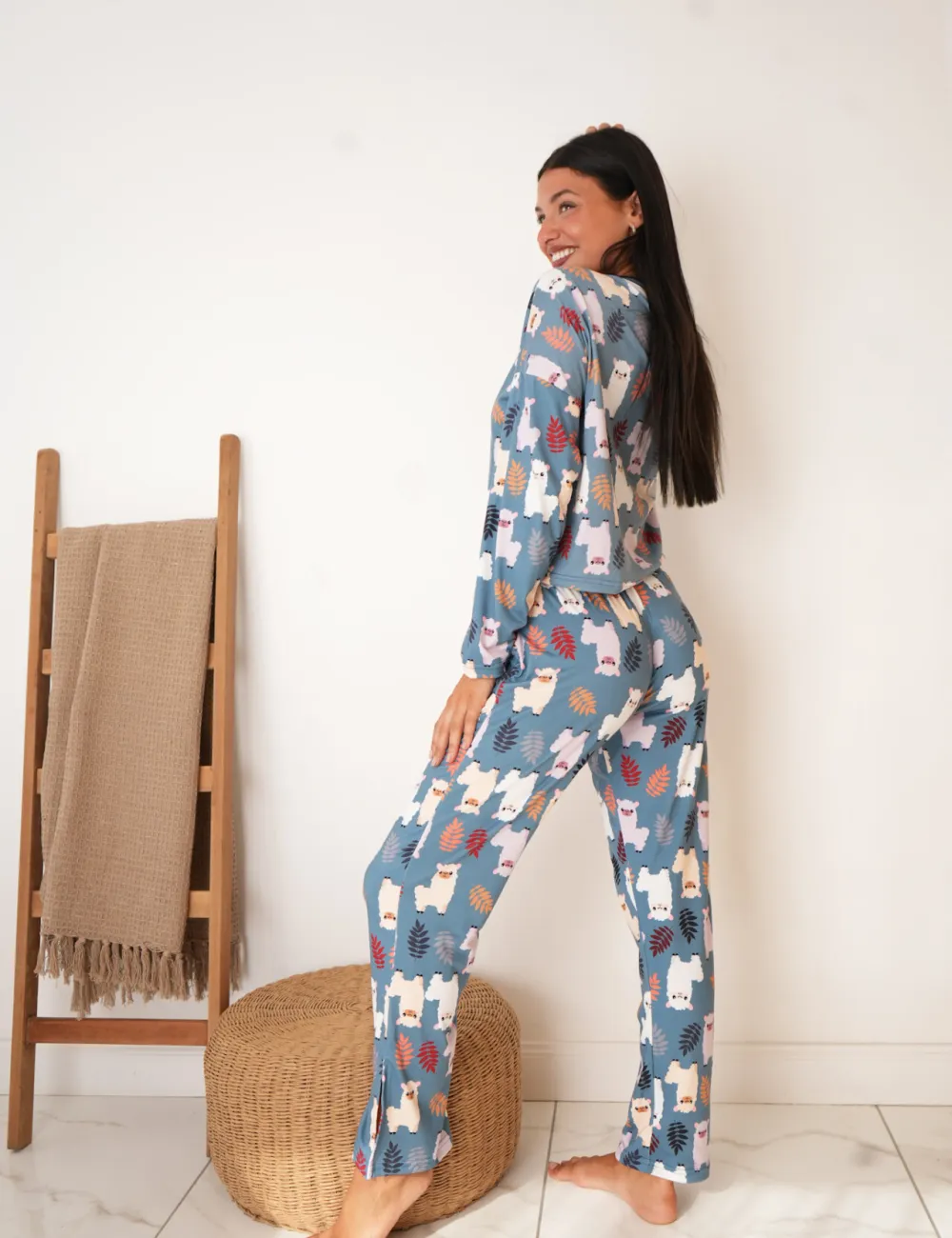 Pantalon recto con tajo, y remera crop mangas largas. Modal soft!